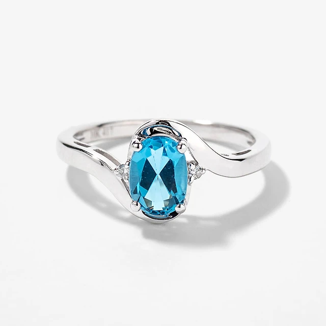 Three Stone Sapphire Ring 10K White Gold