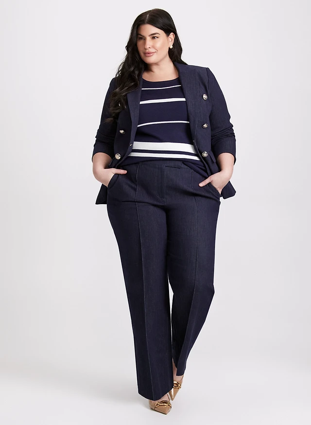 Denim Double-Breasted Blazer & Sofia Slim-Leg Pants - Short
