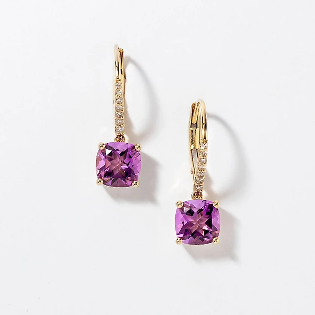 Garnet Earrings with Diamond Accents in 10K Yellow Gold