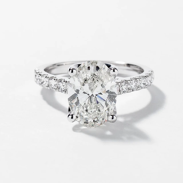Lab Grown Oval Cut Diamond Engagement Ring 14K White Gold (2.10 ct
