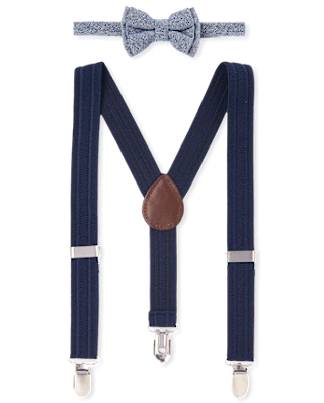 Toddler Boys Chambray Matching Bow Tie And Suspenders Set