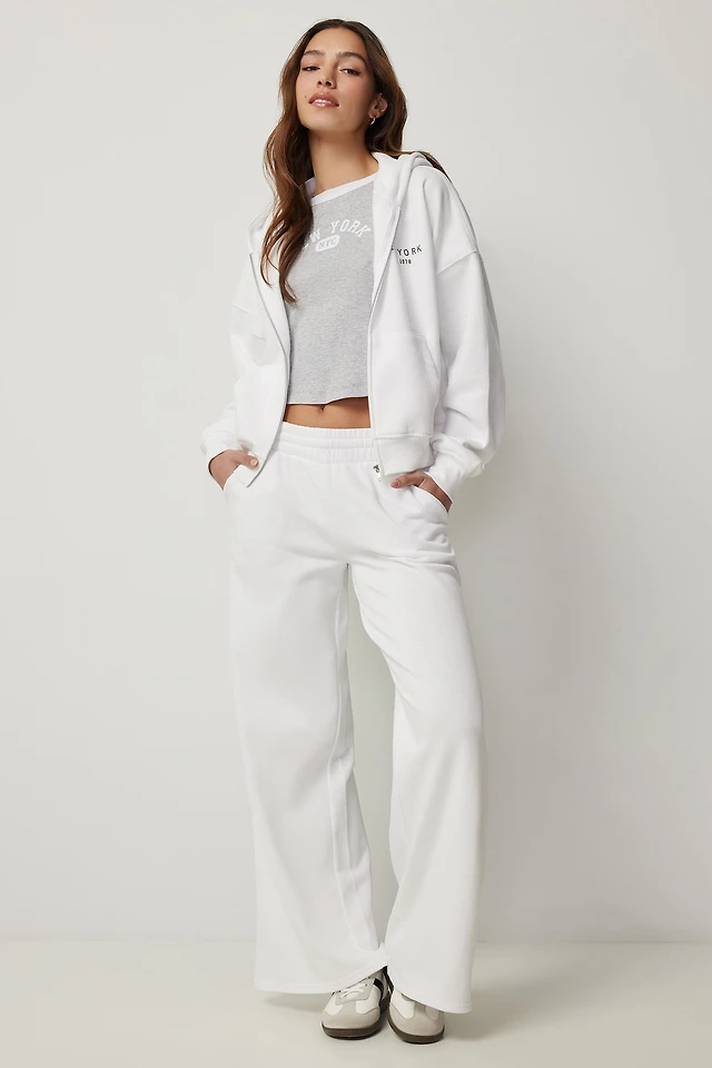 Ardene Slouchy Sweatpants in Off-White | Size | Polyester/Cotton | Fleece-Lined