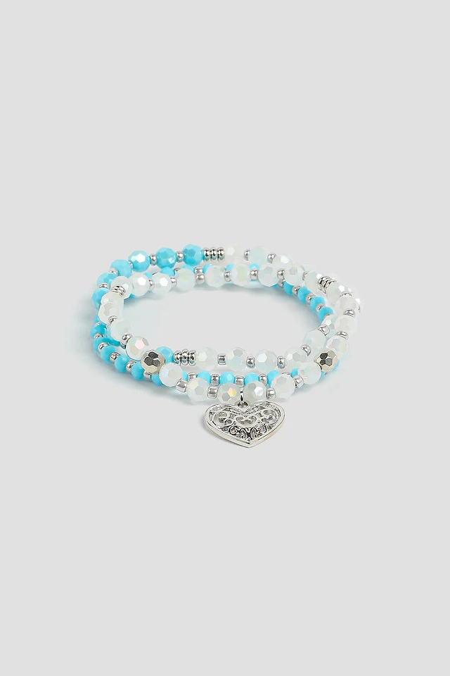 Ardene 3-Pack Bead Bracelet with Heart Charm in Light Blue