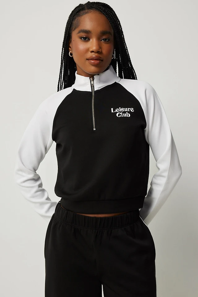 Ardene Scuba Fabric 1/4 Zip Sweatshirt in Black | Size | Polyester/Rayon/Spandex