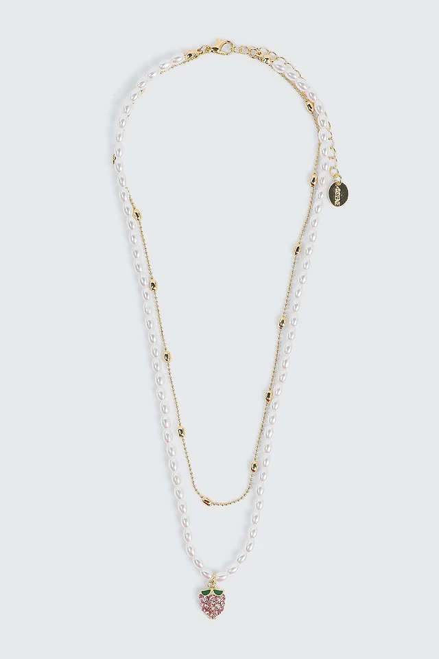 Ardene Two-Row Bead & Chain Palm Tree Necklace in Gold