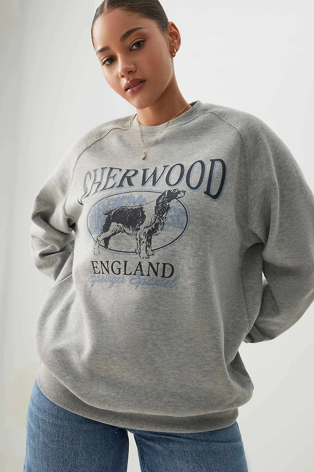 Ardene Destination Crew Neck Sweatshirt in Grey | Size | Polyester/Cotton | Fleece-Lined