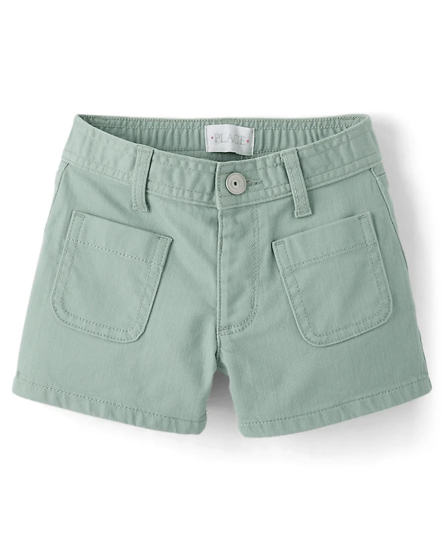Girls Patch Pocket Relaxed Denim Shortie Shorts