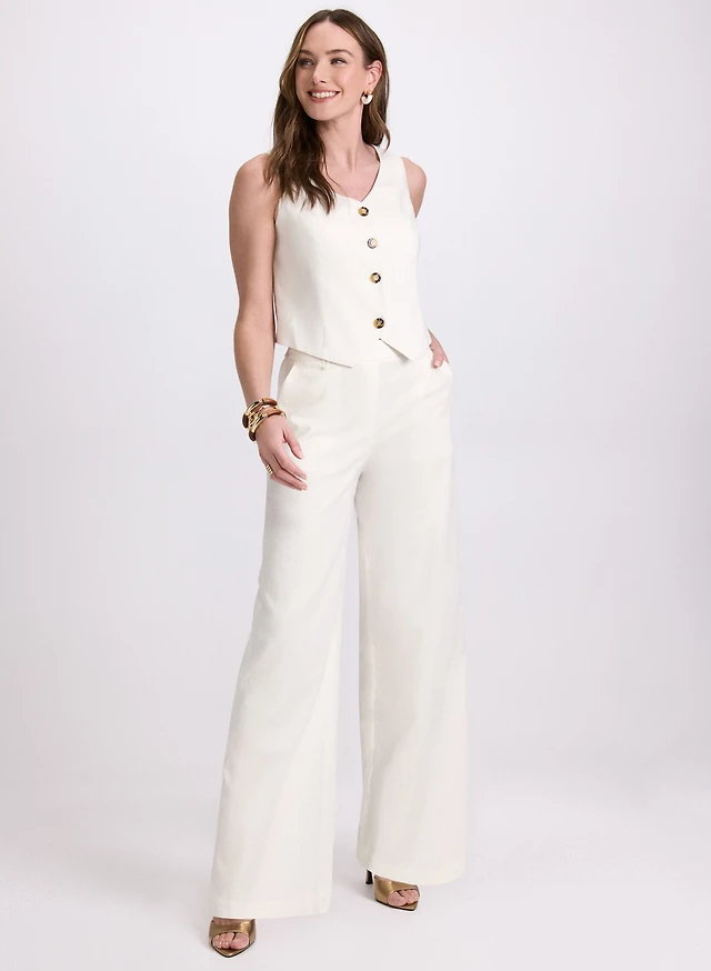 Linen-Blend Blazer & Pull-On Slim-Leg Pants