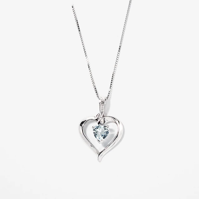 Diamond Lined Heart Necklace in 10K White Gold (0.05ct tw)