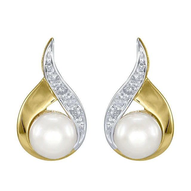 Pearl and Diamond Drop Necklace in 10K Yellow Gold