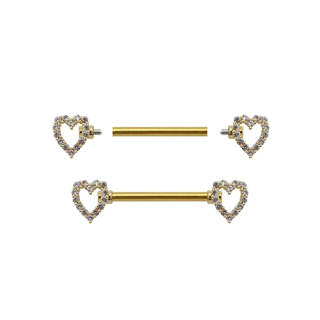 Multi-Pack CZ Pink Heart Nipple Barbells - 2 Pair