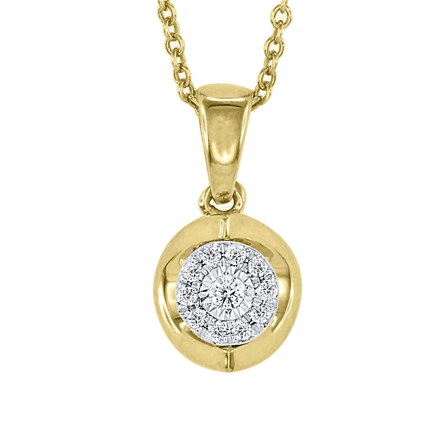 Flower Diamond Cluster Necklace in 10K Yellow Gold (0.16 ct tw)