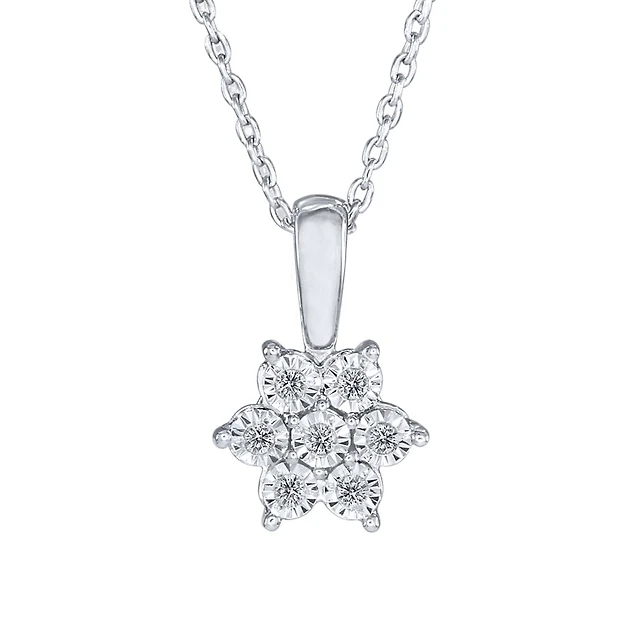 10K White Gold Diamond Cluster Flower Pendant (0.05 ct tw)