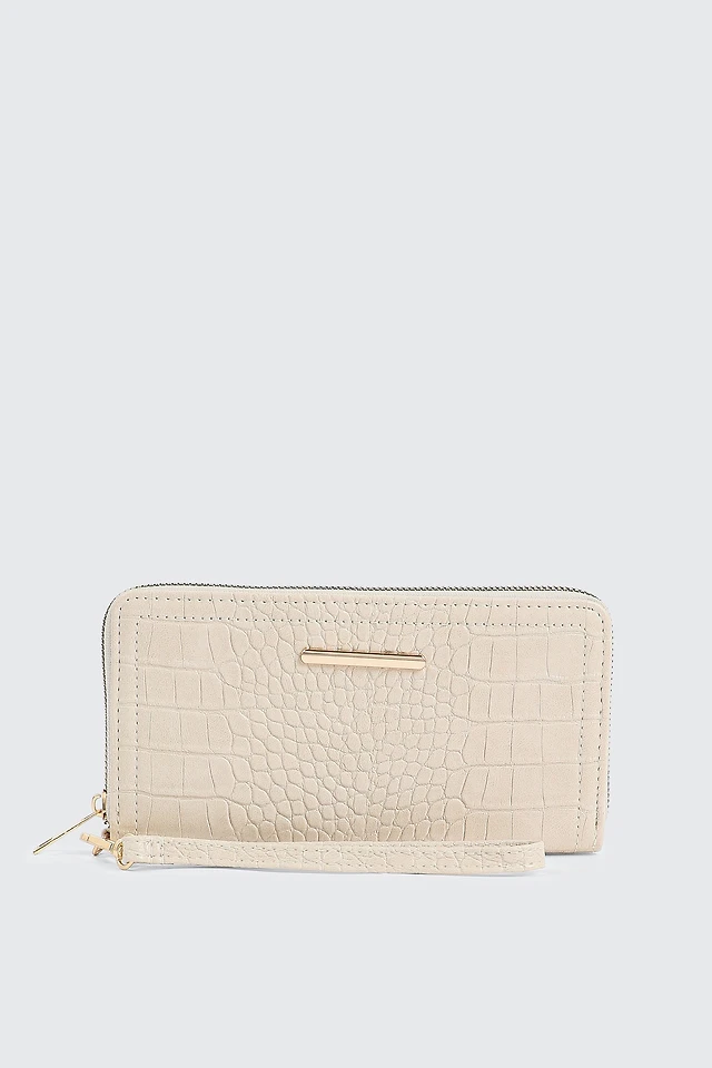 Ardene Turn Lock Wallet in Off-White | Faux Leather/Polyester