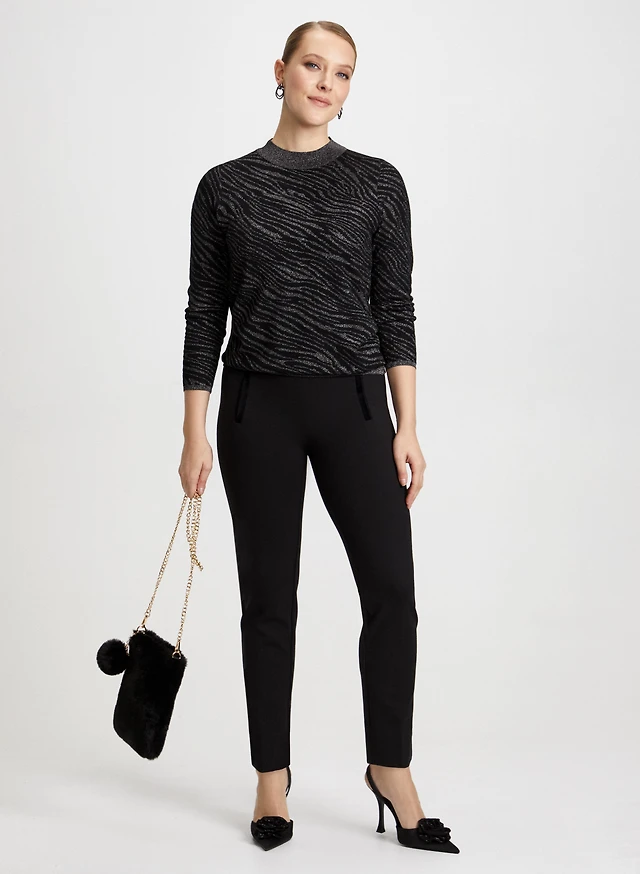 Decorative Button Striped Sweater & Slim Pull-On Ankle Pants
