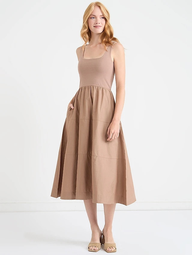 Sleeveless Mix Media Midi Dress Sinopia Fresco