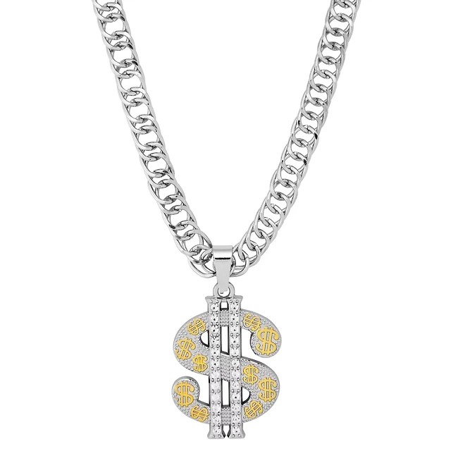 Silver Dollar Sign Bling Chain Necklace