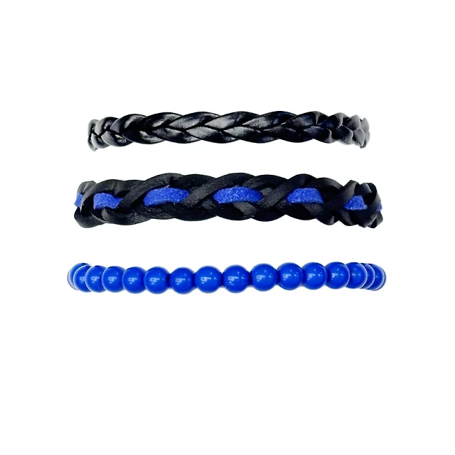Multi-Pack Black and Blue Woven and Beaded Bracelets - 3 Pack